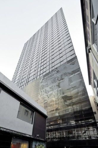 คอนโดที่ว่านี้อยู่ที่เมลเบิร์น ออสเตรเลียครับ ชื่อ a’Beckett Tower จุดเด่นสุดของคอนโดนี้จะอยู่ที่แผงบังแดดด้านนอก 347 อัน ที่ถูกละเลงสี(ด้วยอลูมิเนียม)ลงไปถึง 16 สีครับ