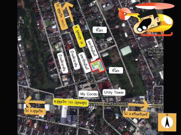 ตรงทางเข้าปากซอยอุดมสุข 29 นั้นมีคอนโดอยู่อีก 2 อันครับ คือ My Condo ซึ่งใหม่หน่อย  ส่วนอีกอันชื่อ Unity Tower ซึ่งเป็นคอนโดค่อนข้างเก่าแล้วครับ  ถ้ามองจากตำแหน่งที่ดินของคอนโด เดอะ ซีรี่ ทางด้านทิศตะวันออกเฉียงใต้(แต่ค่อนมาทางใต้เยอะหน่อย) ก็จะเห็น Unity Tower ค่อนข้างชัดเจนครับ