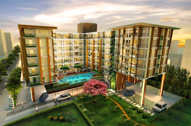 หน้าตาคอนโดเป็นแบบนี้ครับ มุมนี้มองจากทางเข้าเข้าไป