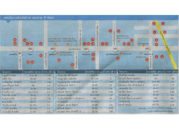 จากการสำรวจล่าสุดพบว่าในรัศมีประมาณ 500 เมตร จากแนวรถไฟฟ้าใต้ดินสถานีพระราม 9 ไปจนถึงสถานีพหลโยธิน(เซ็นทรัล ลาดพร้าว) พบว่ามีคอนโดมิเนียมเปิดตัวตั้งแต่ปี 2552 จำนวน 43 โครงการ รวม 18,100 หน่วย ยังไม่นับรวมโครงการที่เพิ่งเปิดเมื่อต้นปีที่ป่านมาและกำลังจะเปิดตัวอีกเร็วๆนี้