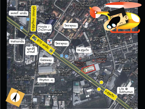 ที่ตั้งของโครงการนั้นใครที่ใช้ชีวิตในเมืองบ่อยๆคงรู้จักกันดีครับ  อยู่ใกล้ๆกับ BTS เอกมัย  ถ้าเดินทางมาโดยใช้ BTS พอถึงสถานีเอกมัยก็ให้ลงฝั่งวัดธาตุทอง  แล้วเดินไปประมาณ 200 เมตรครับ  จะอยู่เลยโรงพยาบาลสุขุมวิทไป