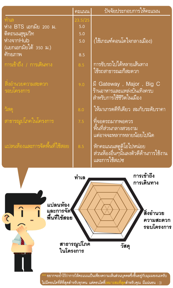 สุดท้ายก็ขอจบรีวิวด้วยการให้คะแนนเช่นเคยครับ (อ่านเกณฑ์การให้คะแนนคอนโดที่นี่)