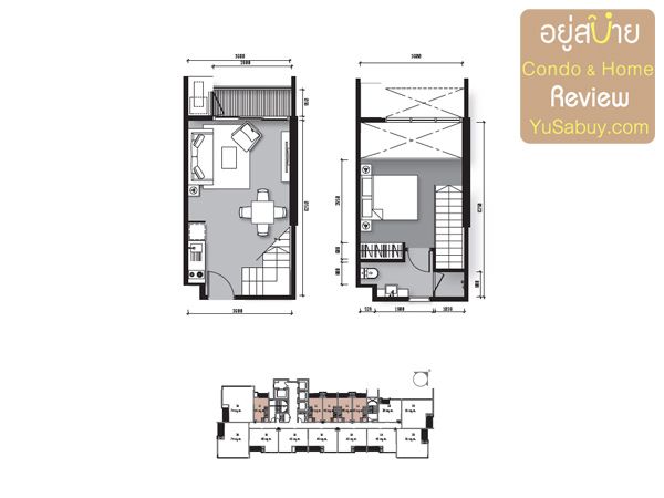 แปลนห้องคอนโด The Loft  เอกมัย  แบบ Duplex  45 ตร.ม.