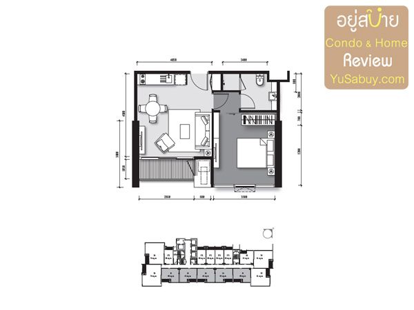 แปลนคอนโด The Loft เอกมัย สตูดิโอขนาด 28 และ 1 ห้องนอนขนาด 35 ตารางเมตร