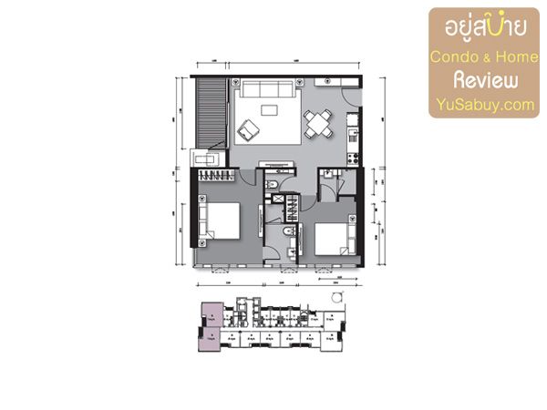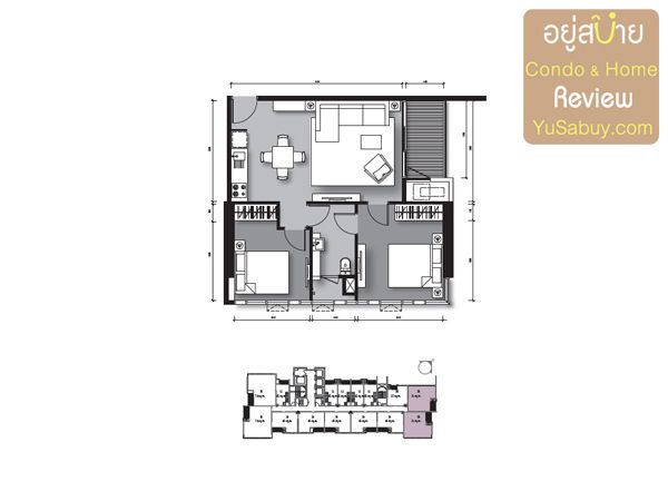 แปลนห้องคอนโด The Loft  เอกมัย  แบบ 2 ห้องนอน  61 ตร.ม.