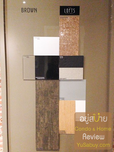 อีกจุดหนึ่งที่น่าสนใจคือพวกวัสดุปิดผิว (finishing) ในห้องที่ซื้อซึ่งเราเลือกเองได้ด้วยครับ  เขาจะมีวัสดุมาให้ 4  ชุด  ที่เลือกโทนสีมาให้แล้ว  ชอบชุดไหนก็เลือกเอาเองได้เลยครับ