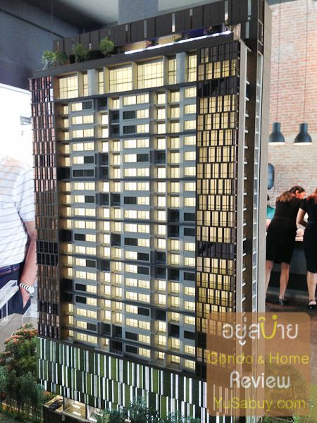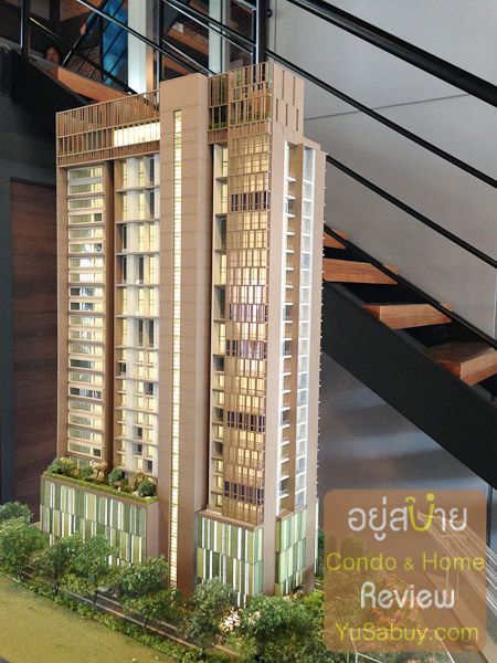 ในรูปแบบการใช้องค์ประกอบทางสถาปัตยกรรมนั้นมีลูกเล่นการใช้จังหวะเส้นสายที่น่าสนใจ  ถ้าลองสังเกตดูรูปด้านในแต่ละส่วนจะสะท้อนชัดเจนเลยว่าตำแหน่งนั้นเป็นห้องแบบไหน   ทั้งนี้ก็เนื่องมาจากการเลือกใช้รูปแบบของหน้าต่างและช่องแสงที่แตกต่างกันในห้องแต่ละแบบครับ  ดูแล้วไม่เลียนแบบเดียวกันไปทั้งตึก  ส่วนจุดที่น่าลุ้นคือ Green Wall ที่เป็นผนังที่จอดรถครับ  โดยส่วนตัวอยากรู้ว่าจะประสบความสำเร็จออกมาสวยงามขนาดไหน(แอบลุ้นให้สำเร็จนะ)  เพราะจากประสบการณ์ที่เห็นมา การทำ Green Wall ลักษณะนี้ในประเทศไทยหาที่แบบทำมาแล้วอยู่รอดได้สวยงามเนียนๆตา  มีสภาพดูดีนี่ยากมากครับ  แล้วพวกนี้ต้นทุนค่าดูแลรักษาสูงด้วย