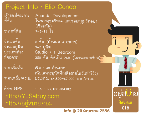 ปิดท้ายรีวิวคอนโด Elio Condo Sukhumvit64 ของเว็บอยู่สบายไว้เท่านี้นะครับ สามารถเข้าไปเยี่ยมชม Fan Page ของเรา ได้ที่ https://www.facebook.com/Yusabuy สงสัยหรืออยากช่วยเพิ่มเติมข้อมูลตรงไหนที่อยู่สบายรีวิวตกหล่นไป พิมพ์คุยกันข้างล่างได้เลยครับ ^____^
