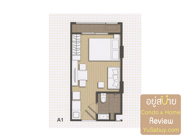 แปลนห้อง Elio Condo Sukhumvit64 แบบสตูดิโอ(A1) 21.7 ตร.ม.