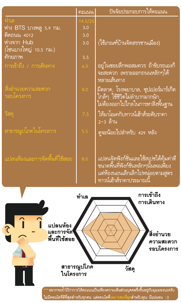 สุดท้ายก็ขอจบรีวิวด้วยการให้คะแนนเช่นเคยครับ (อ่านเกณฑ์การให้คะแนนบ้านจัดสรรที่นี่)