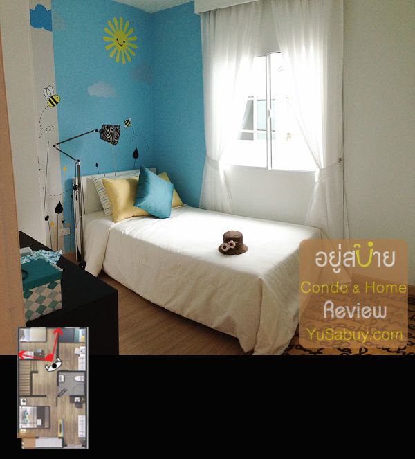 พอขึ้นไปชั้น 2 ห้องนอนใหญ่ด้านหน้าจะยาวตลอดแนวหน้าบ้าน สามารถกั้นเป็น Walk-in closet ได้ครับ พื้นที่ระเบียงจะมีเฉพาะตรงส่วนวางตู้เสื้อผ้าเท่านั้น ตรงส่วนนอนนั้นไม่มีระเบียงครับ ส่วนห้องนอนอีก 2 ห้องด้านหลังขนาดเท่าๆกันครับ ไซส์กระทัดรัดตามแบบของทาวน์เฮ้าส์ทั่วๆไป