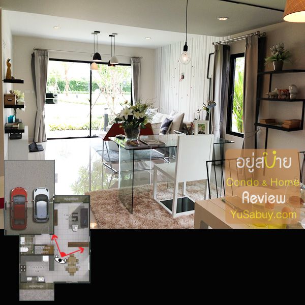 มีบ้านตัวอย่างให้ดูทั้งสามแบบเลยครับ ลองดูภาพที่ถ่ายมาด้านล่างประกอบกันไป แต่อย่าลืมว่าบ้านจริงที่ได้จะเป็นบ้านเปล่าเท่านั้นนะครับ ดูการตกแต่งสเปซให้พอเป็นไอเดียเฉยๆว่าชอบรูปแบบฟังก์ชั่นและสเปซแบบนี้หรือเปล่า (ความสูงฝ้าเพดาน บ้านแบบ Angle ชั้นล่างสูง 2.4 ม. ส่วนชั้นบนสูง 2.6 เมตร ส่วนบ้านแบบ Linear ชั้นล่างสูง 2.5 เมตร ชั้นบนสูง 2.6 เมตรครับ)