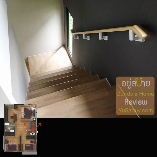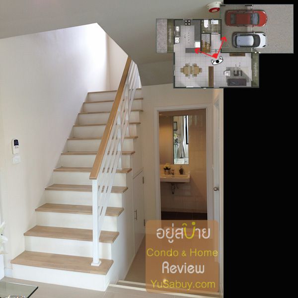 ด้านรูปร่างหน้าตาบ้านก็เป็นทรงโมเดิร์นเรียบๆครับ คาร์เร็คเตอร์ดูเป็นวัยรุ่นมากทีเดียว บ้านแต่ละหลังจะมีสีที่ทาเป็นจุดเด่นตรงชั้น 2 แตกต่างกัน ตรงนี้โครงการบอกว่าเลือกไม่ได้ครับ ใครอยากได้สีอะไรก็ลองดูตำแหน่งบ้านที่มีสีที่ชอบเอาเอง จุดที่ผมไม่ค่อยชอบในบ้านคือพวกดีเทลเล็กๆน้อยๆครับ เช่น ราวบันไดเกยกันเยอะไปหน่อย เวลาจับราวขึ้นลงอาจจะสะดุดอยู่บ้าง เวลาขึ้นบันไดจังหวะที่จะก้าวขึ้นถึงข้างบนสุดมันจะต้องเอื้อมเยอะครับลองไปเทสดูได้ แล้วก็ฝ้าเพดานชั้นล่างของบ้านแบบ Angle ที่ 2.4 เมตร ผมคิดว่าเตี้ยไปหน่อยครับ