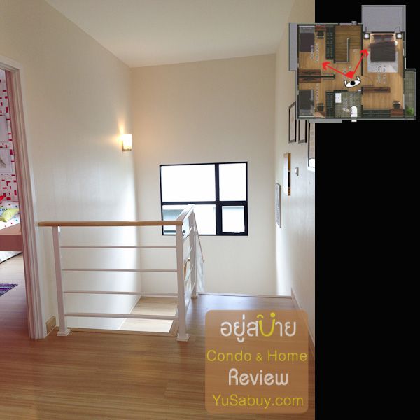 ชั้นบนนั้นมีมุมเล็กตรงโถงบันไดอยู่หน่อยนึงครับ ไอเดียแรกที่ผมเห็นสเปซตรงนี้นึกถึงการตั้งหิ้งพระ แต่ดูไปดูมาคงไม่เหมานักเพราะตรงกับประตูห้องน้ำแถมเปิดไปเจอโถสุขภัณฑ์เลย ส่วนฟังก์ชั่นห้องนอนก็จััดมาตามแบบทั่วๆไปครับ คิดเพื่อมาสำหรับกั้น walk-in closet ไว้ด้วย จุดที่น่าสนใจคือห้องนอน 2 ห้องเล็กด้านหลังครับ ผนังตรงกลางนั้นพฤกษาไม่ได้ใช้ Precast เหมือนส่วนอื่นๆ แต่เป็นผนังก่อสามารถทุบขยายรวมกันได้ ก็ดูยืดหยุ่นดีสำหรับคนที่ต้องการพื้นที่ใหญ่แต่ไม่ต้องการจำนวนห้องเยอะๆ เท่าที่ผมรู้มาโครงการ Delight พระราม5-กาญจนาภิเษก นี่เป็นโครงการแรกที่พฤกษาทดลองกลับมาใช้ผนังก่อระหว่างห้องนอนเล็ก 2 ห้องเพื่อคนต้องการทุบขยายรวมกันนะครับ ปกติแล้วพฤกษาเขา Precast ล้วนๆทั้งหลังอยู่แล้ว