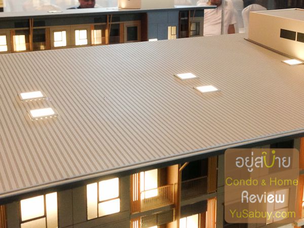 ถ้าสังเกตดูจะเห็นว่าหลังคาคอนโดไม่ได้เป็นคอนกรีตเสริมเหล็กแบบที่คอนโดทั่วๆไปใช้กันครับ  จะใช้ Metal Sheet  ซึ่งเมื่อเทียบกับคอนกรีตทั่วๆไปแล้วจะดีกว่าในแง่ของการป้องกันความร้อนให้ชั้นบนสุดของคอนโด  แต่ทั้งนี้ถ้าพ่น cloating ไม่ดีนี่เสียงดังกระจายแน่นอน  ถ้าพ่นดีๆก็ไม่มีปัญหาอะไรครับ