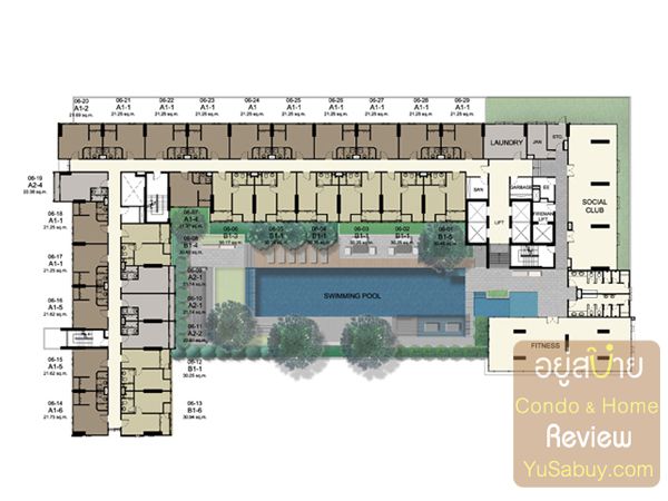 แปลนชั้น 6 เป็นชั้น Facilities ครับ มีสระว่าบน้ำ, ฟิตเนส, Social Club ห้องพักจะเริ่มที่ชั้นนี้