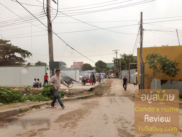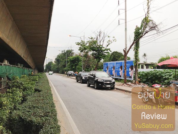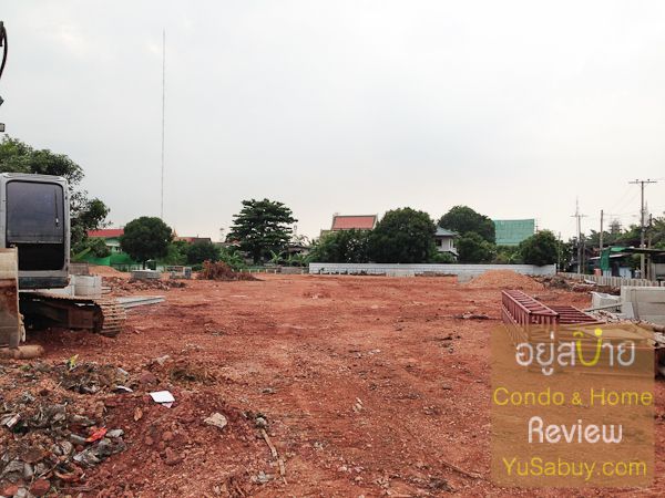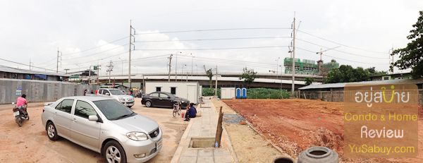 เข้ามาในที่ดินแล้วมองย้อนกลับไป ซ้ายมือคือ BTS วุฒากาศที่กำลังสร้างอยู่ ขวามือคือเพื่อนบ้านชื่อ The Key ของ Land and Houses