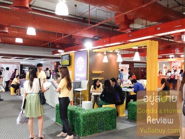 ดูแบงค์ด้านบนไปแล้วคราวนี้มาดูโซนด้านล่างกันครับ เป็นบ้านและคอนโดโครงการต่างๆที่มาออกบูธ แต่ส่วนใหญ่ก็จะเป็นเจ้าเล็กๆหรือกลางๆ พวกบิ๊กเนมรายใหญ่ๆไม่ค่อยมาครับ บิ๊กเนมหน่อยเท่าที่เห็นก็มี ศุภาลัย , Q House (เอาคอนโด The Trust มา) ส่วนรายกลางๆก็บ้านกานดา พร๊อพเพอร์ตี้ , ลลิล พร๊อพเพอร์ตี้ , NC Group , Magnolia (เอา Whizdom มา) , TC Green และก็ CMC Group ที่เน้นกับ Bangkok Horizon