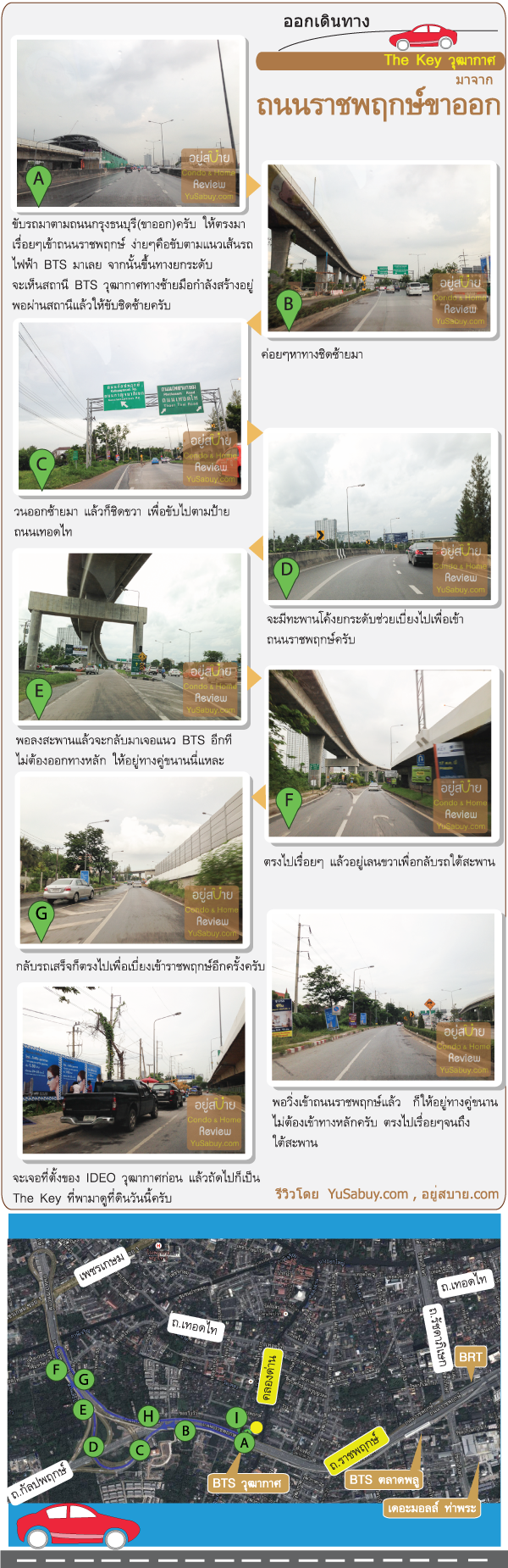 วงเวียนใหญ่ ที่ BTS วงเวียนใหญ่แทน แต่อยู่สบายพาขับรถวนไปดูที่ที่ดินจริงๆก่อน จาก BTS วงเวียนใหญ่ให้เราใช้เส้นทางขับรถมาตามถนนกรุงธนบุรีเรื่อยๆข้ามแยกสมเด็จพระเจ้าตากสินเข้ายังถนนราชพฤกษ์ครับ ข้อจำกัดของกลุ่มคอนโดที่ขึ้นตรงสถานี BTS วุฒากาศคือต้องต้้องไปวนกลับรถถ้ามาครั้งแรกๆอาจจะงงหน่อยครับ ผมเลยทำแผนที่กราฟฟิกให้ดูตั้งแต่ตรง BTS วุฒากาศจนไปกลับรถมาถึงโครงการ