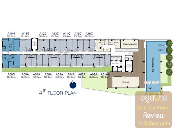 - ขนาดห้อง >>> 1 ห้องนอน 32.40-33.10 / 2 ห้องนอน 56.30-57.60 ตารางเมตร