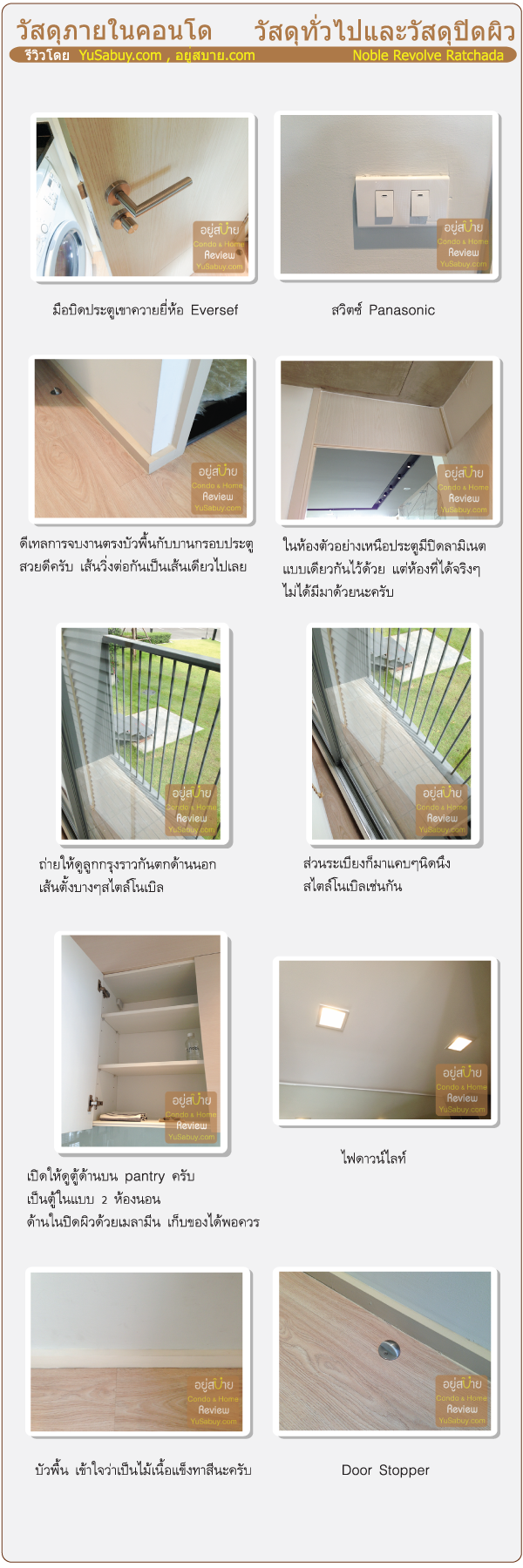มาถึงรีวิววัสดุกันบ้างครับ ห้องที่ให้มาเป็นห้องเปล่า นอกจากสุขภัณฑ์ในห้องน้ำก็มีเคาท์เตอร์ pantry ครัวมาใ้ห้ ไม่มีเฟอร์นิเจอร์นะครับ พวกผิวสัมผัสของวัสดุที่ให้มาค่อนข้างโอเคครับ เพียงแต่ว่าพอมองเทียบกับราคาเฉลี่ยแล้วก็อยากจะให้ภาพรวมดูดีกว่านี้อีกหน่อย วัสดุที่ได้มาผมเลยมองว่ายังค่อนข้างจะเฉยๆอยู่นิดนึงครับ ไม่ได้มีประเด็นอะไรให้พูดถึงมากในเรื่องวัสดุ