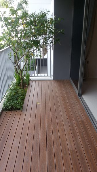 ก่อนอื่นเราจะต้องตอบคำถามตัวเองให้ได้ก่อนว่าเราจะปูพื้นใหม่หรือไม่ ลองดูกระเบื้องพื้นคอนโดห้องที่คุณซื้อมาก่อนว่าอยากจะปรับอะไรหรือไม่ ถ้าจะปรับเปลี่ยนก็อาจจะใช้พื้นระแนงไม้สำเร็จรูปที่ขายกันทั่วไปตามท้องตลาดหรือจะซื้อแผ่นหญ้าเทียมมาปูก็เล่นๆก็ได้ อย่างพื้นไม้ระแนงสำเร็จรูปเดี๋ยวนี้ก็มีให้เลือกทั้งที่ผิวเป็นไม้จริงและไม้เทียมทำจากไฟเบอร์ซีเมนต์ครับ หรือใครจะตีโครงแล้วปูไม้จริงไปเลยก็ได้อยู่ สิ่งที่สำคัญคืออย่าลืมหาทางระบายน้ำไว้ด้วยนะครับ ให้ไปลงตำแหน่งท่อเดิมที่ระเบียงนั่นแหละ