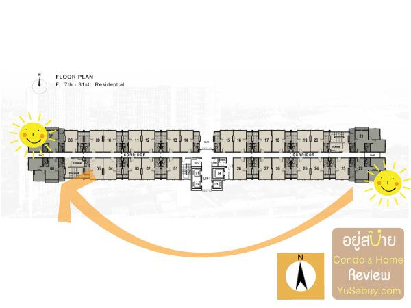 ทิศทางแดดกับผังโครงการคอนโด The Tree Bangpo Station (เดอะทรี บางโพ สเตชั่น)