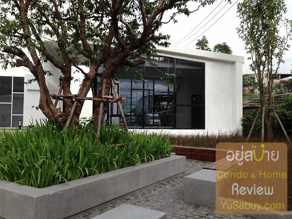 ร้านขายของด้านหน้าโครงการ รอบๆมีสวนกับที่นั่งพักผ่อนให้