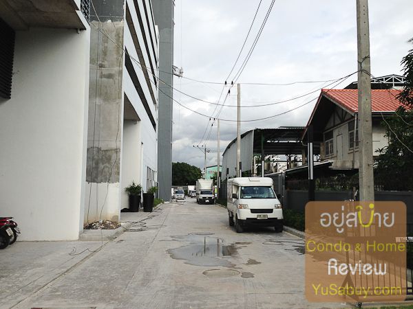 ถนนด้านข้างทิศใต้ของโครงการ  ยังมีบางส่วนที่ยังเก็บงานสีอยู่