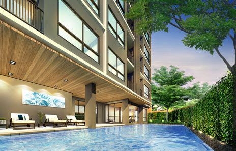 พื้นที่ใช้สอยส่วนกลางอื่นๆนั้นจะอยู่ที่ชั้น 1 และชั้นดาดฟ้าครับ บริเวณชั้น 1 ที่เข้ามาก็จะมีฟิตเนสและสระว่ายน้ำ สระว่ายน้ำตรงนี้ติดถนนสาธารณะด้านนอกเลย โครงการเลยทำรั้วทึบกั้นให้เพื่อบังสายตาให้ แล้วก็ปลูกต้นไม้ตามแนวรั้วแบบในรูปครับ
