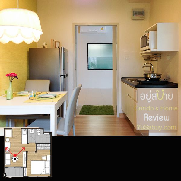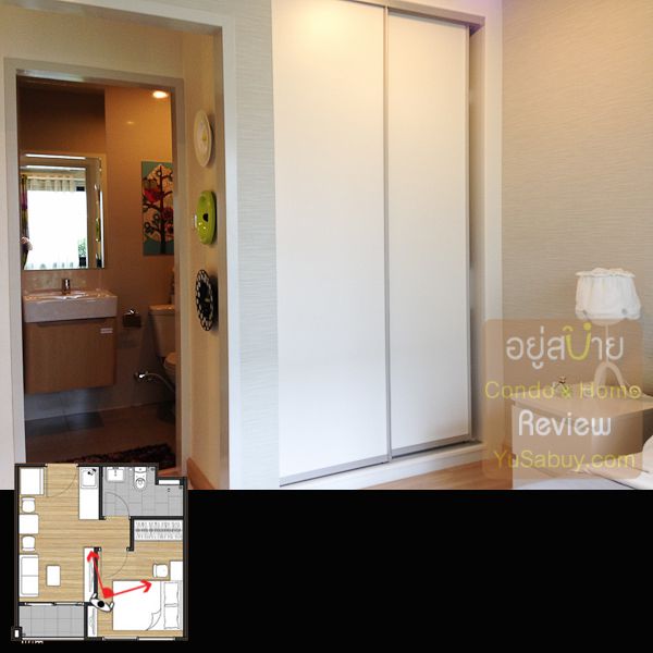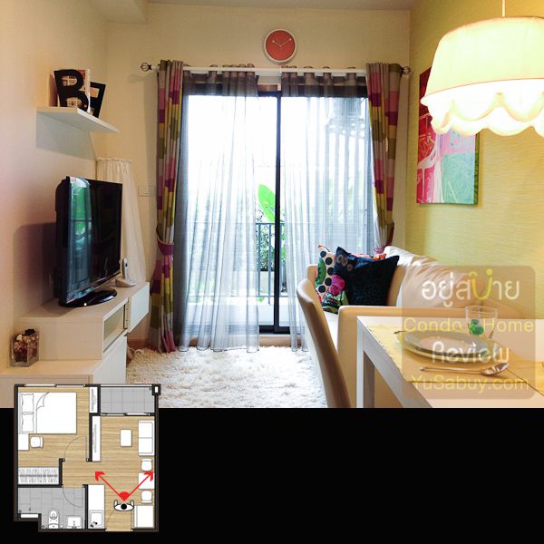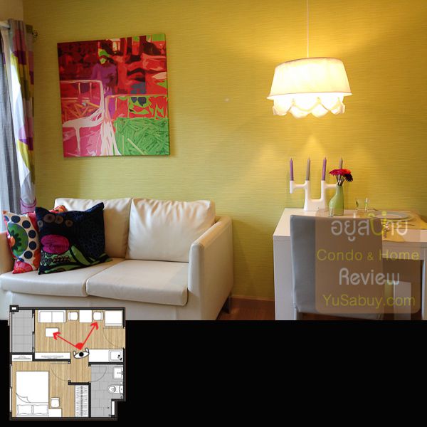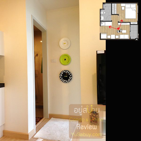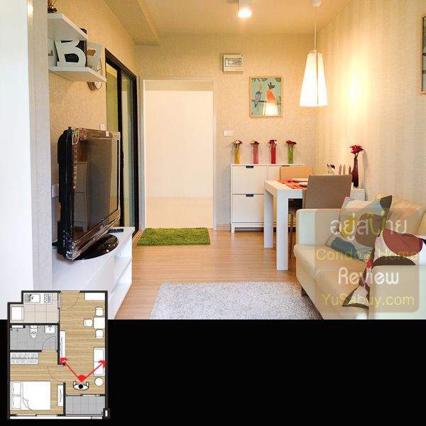 ดูแปลนแล้วก็มาดูห้องตัวอย่างเพื่อให้เห็นสเปซกันครับ ในห้องตัวอย่างของโครงการจะมีแค่ 2 แบบ คือ แบบ 26 และแบบ 32 ตารางเมตร เพราะแบบ 36 ตารางเมตรขายหมดแล้วห็เลยปิดห้องตัวอย่างไปเรียบร้อย