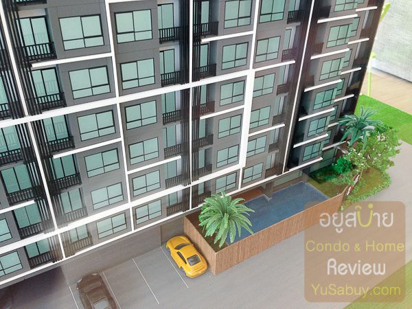 การดีไซน์ของตัวอาคารด้านทิศเหนือก็พยายามใส่เส้นสายลงบนผนังอาคารไม่ให้ดูเรียบจนเกินไป ด้านทิศใต้ที่ไม่ได้เห็นเด่นจากถนนซอยก็แพทเทริ์นการดีไซน์ผนังภายนอกจะเรียบกว่า แม้ตัวดีไซน์จะไม่ได้ถึงกับโดดเด่นแต่ดูแล้วอย่างน้อยแยกออกมาจากอพาร์ทเม้นท์ที่อยู่ติดๆกันได้ครับ(คือแยกออกว่าตึกไหนเป็นคอนโด ตึกไหนเป็นอพาร์ทเม้นท์) ด้านวัสดุที่ให้มาก็โอเคตามระดับราคาครับ ถือว่าวัสดุใช้ได้ทีเดียว สาธารณูปโภคที่ได้ก็มีตามมาตราฐานทั่วๆไปคือมีสระว่ายน้ำกับฟิตเนสแต่ขนาดจะดูเล็กไปสักหน่อย เช่นเดียวกับที่จอดรถที่มีให้ 30% นั้นน้อยไปหน่อยครับ วันไหนรถเยอะคงต้องจอดแปะๆด้านหน้าแล้วฝากพี่ยามช่วยเข็นเอา
