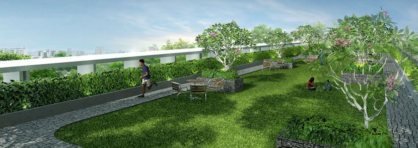 บนหลังคาดาดฟ้าก็เป็นสวนและมี Jogging track ให้รอบๆ