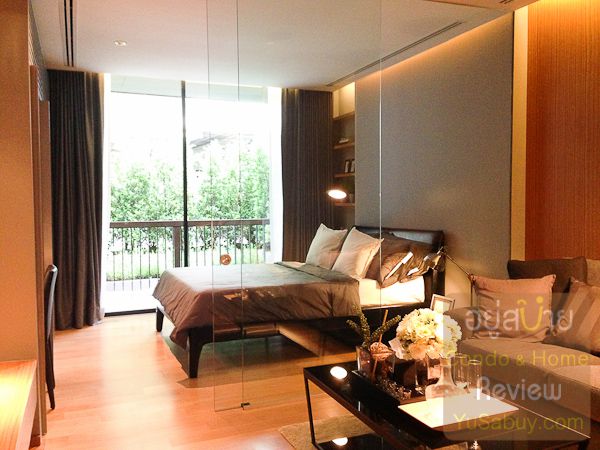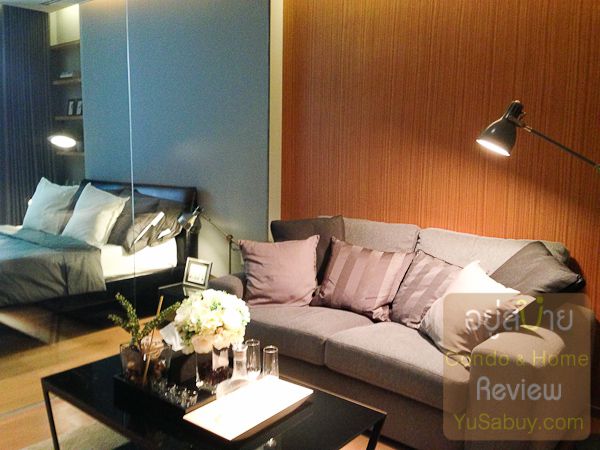มองเข้าไปในห้อง ผนังกั้นห้องนอนจะเป็นกระจกเต็มบานครับ ในห้องตัวอยางมาแบบ Frameless แต่ของจริงจะมีบานกรอบมาด้วย แต่็น่าจะจรดฝ้าแบบนี้แหละ