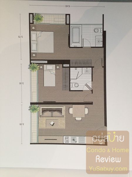 ห้องแบบ 1 ห้องนอนที่ใหญ่ขึ้นมาอีกนิดนึงก็จะขยายเป็น 2 ช่วงเสา  พื้นที่ห้อง 34.11 ตารางเมตรครับ  หน้ากว้าง 5.75 เมตร  แต่ห้องจะตื้นกว่าแบบแรกที่เอามาให้ดูกัน  ห้องแบบนี้ส่วนพักผ่อนและห้องนอนจะติดด้านนอกทั้งคู่  โดยส่วนตัวแล้วผมชอบ 34.11 ตารางเมตรนี้มากกว่าแบบ 33.72  ตารางเมตรครับ