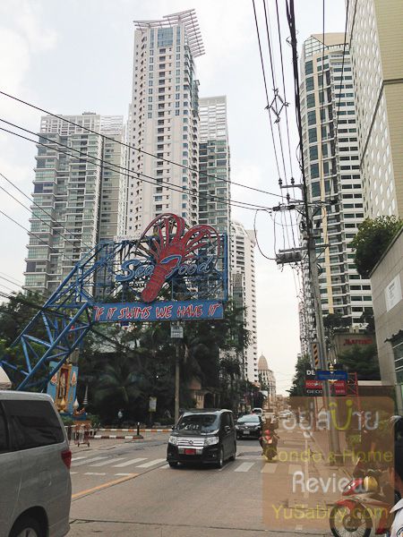 มองจากหน้าโครงการคอนโด Park24 เข้าไปในซอยต่อครับ ผมยังไม่เข้าโครงการแหละกัน พาเดินดูรอบๆก่อน ที่เห็นกุ้งลอยอยู่กลางถนนก็ร้านซีฟู้ดครับ อยู่มานานมากแล้ว