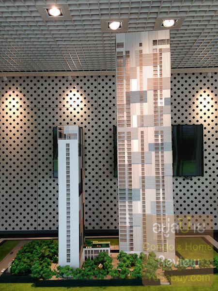 ตัวคอนโดในเฟสแรกจะมี 2 ตึกครับ ตึกทางขวามือที่สูงกว่าเรียกว่าตึก 2 ความสูง 51 ชั้น ส่วนตึกทางซ้ายเตี้ยกว่าคือตึก 3 สูง 29 ชั้น