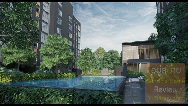 พื้นที่ส่วนกลางนั้นมีคลับเฮ้าส์ สระว่ายน้ำ แล้วก็ฟิตเนสครับ สระว่ายน้ำนั้นจะอยู่ระหว่าง Building A และ B ส่วนพื้นที่ระหว่าง Building B และ C จะมีแค่ปลูกต้นไม้ตามแนวอาคารอย่างเดียว ตัวคลับเฮ้าส์นั้นจะดัดแปลงจากสำนักงานขายในปัจจุบัน เลยเรียกว่ามีพื้นที่พอสมควรสำหรับทั้งที่นั่งพักผ่อนและฟิตเนสครับ ตรงนี้ก็น่าจะดีอยู่