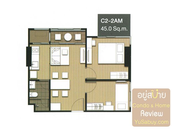 2 Bedroom พื้นที่ 45.00 ตร.ม. ราคาขาย 5,176,000 บาท ผ่อนประมาณ 38,123 บาท/เดือน