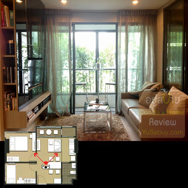 ลักษณะของตัวอาคารนั้นเป็นรูปตัว H ผสมกับตัว L ซึ่งทำให้เกิดสเปซที่เป็นคล้ายๆคอร์ททั้งด้านในและด้านนอก ด้านนอกนั้นแน่นอนว่าได้รับเสียงจากถนนมากกว่าด้านในแน่ๆ โดยเฉพาะชั้นล่างๆฝั่งที่ติดกับทางรถไฟก็คงได้ยินเสียงรถไฟบ้างเป็นระยะๆ แต่ก็จะได้วิวโล่งกว่า ด้านในวิวของคอร์ทนั้นเงียบกว่าห้องด้านนอกแน่นอนแต่บางส่วนมองไปก็จะเห็นห้องฝั่งตรงข้ามไม่ได้มองแล้วโล่งออกไป ตรงนี้ก็คงต้องเลือกเอาครับ ตำแหน่งห้องต่างๆนั้นมีผลคนละแบบกันเลยทั้งในเรื่องแสงแดด / เสียงรบกวน / วิว ต้องลองดูจากข้อมูลที่เล่าๆมาประกอบกันครับ