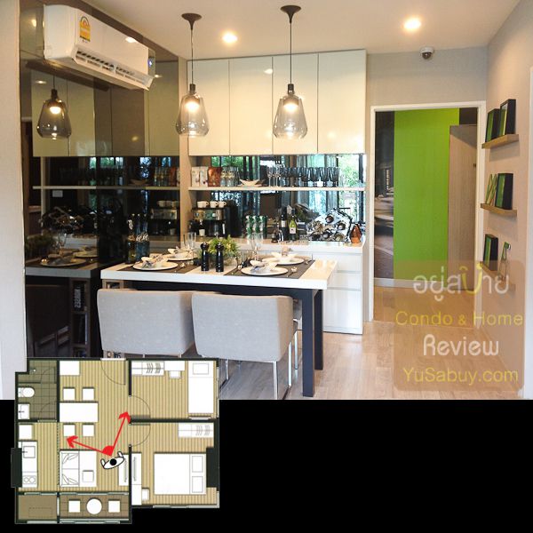 แปลนแบบ 1 ห้องนอนนั้นจัดมาค่อนข้างลงตัวครับ การวางฟังก์ชั่นนั้นคล้ายๆกับแบบ 1 ห้องนอน 34 ตารางเมตรของไอดีโอ คิว ราชเทวี ที่เปิดตัวพร้อมๆกัน โดยจัดส่วน Pantry ครัวไว้ทางด้านหน้า สเปซตรงนี้จะเชื่อมต่อกับส่วนรับประทานอาหารและส่วนพักผ่อน