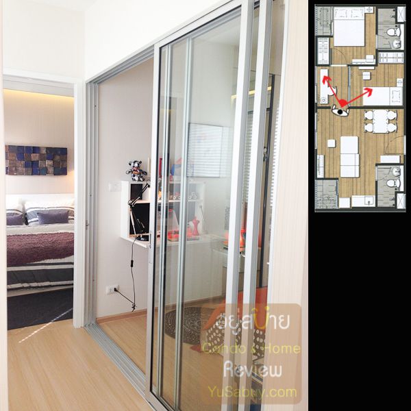 ในส่วนห้องนอน 2 ห้อง จะมีเฉพาะห้องนอนใหญ่ที่ติดด้านนอก ส่วนห้องนอนเล็กนั้นจะไม่ติดด้านนอกครับ โครงการใช้วิธีการติดกระจกบานเลื่อนบานใหญ่เต็มบานทำให้แก้ปัญหาให้แสงธรรมชาติเข้ามาได้มากทีเดียว เพียงแต่ก็อาจจะต้องเสียความเป็นส่วนตัวไปหน่อยครับ