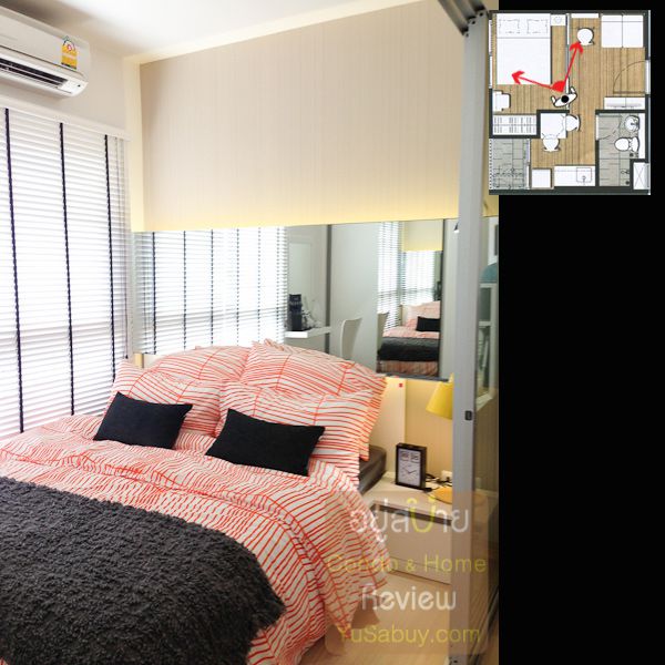 แบบห้อง : 1 ห้องนอน 22.5 .ม. ห้องเสร็จแล้ว เข้าอยู่ได้เลยแถมชุดครัวบิ้วอิน , ตู้เสื้อผ้าบิ้วอิน , วอลเปเปอร์