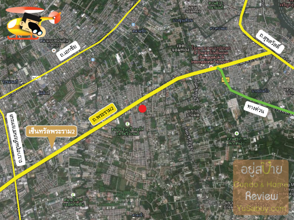 - ที่ตั้งโครงการ >>> ริมถนนพระราม 2 ฝั่งขาออก ก่อนถึงโรงพยาบาลบางมด