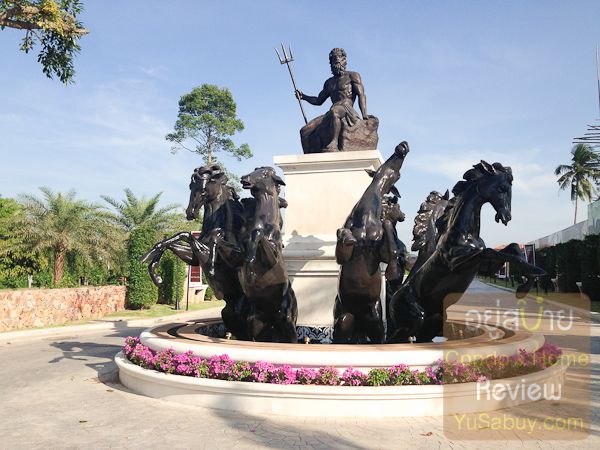 ระหว่างทางเข้าโครงการก็มีเหล่าเทพีในตำนานกรีกทั้งหลายมาเรียงรายต้อนรับกันอยู่ครับ สังเกตว่าพื้นถนนนั้นไม่ได้เทคอนกรีตเฉยๆแต่ปูกระเบื้องบนผิวถนนด้วย