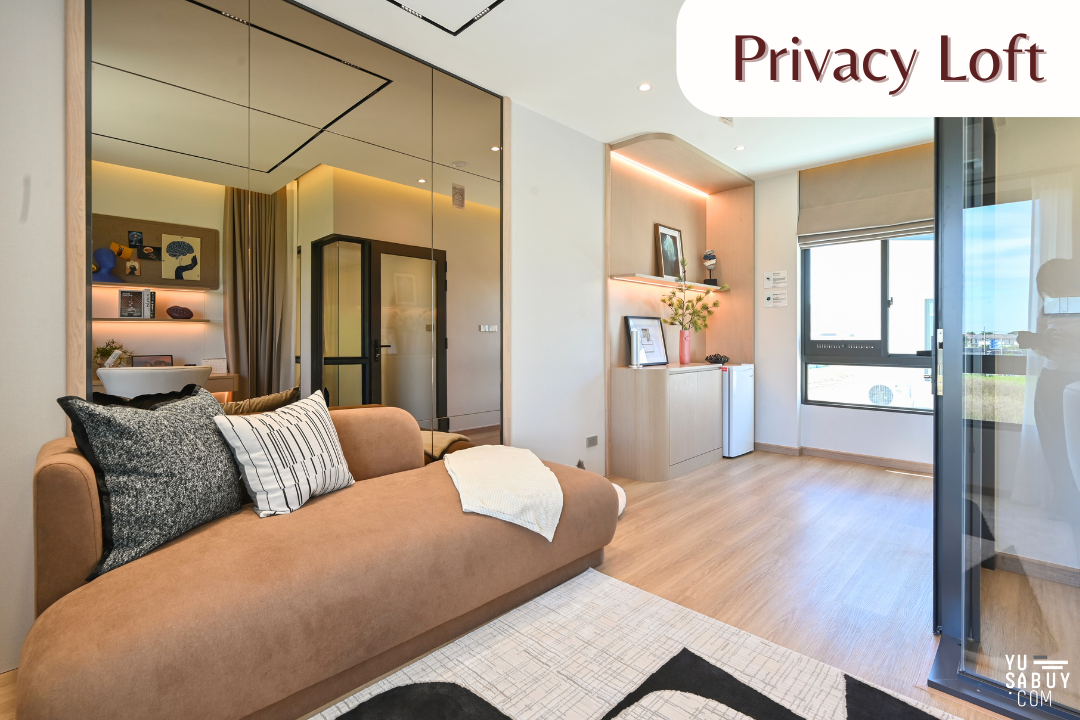 และสุดท้ายจะเป็นชั้นลอย หรือ Privacy Loft ส่วนนี้เราสามารถจัดเป็นอีกหนึ่งฟังก์ชันที่ชอบได้ จะทำเป็นมินิบาร์ชั้นบน หรือห้องดูหนังก็ปรับเปลี่ยนได้ตามต้องการ